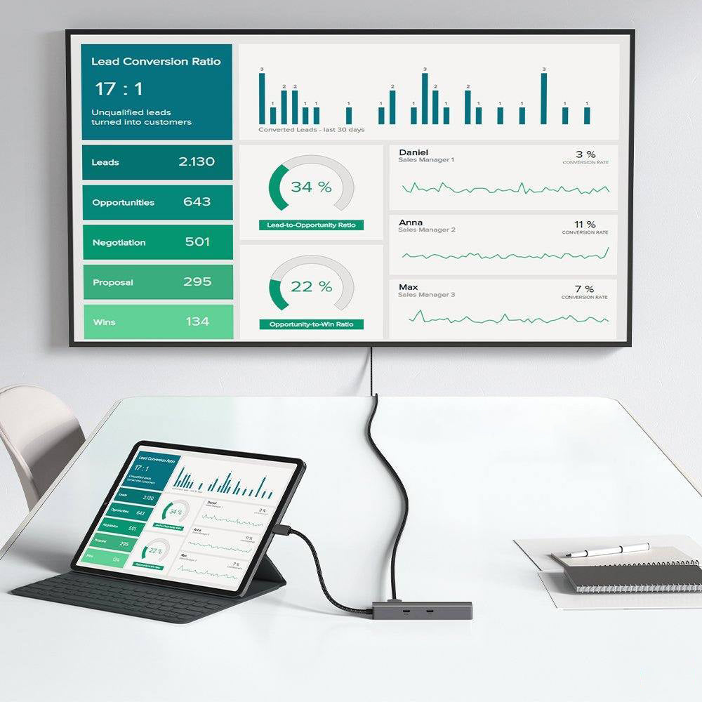 Connect all the essential peripherals to 6 additional ports from just one USB-C port.  A clutter-free solution for the modern multitasker! With a single connection, unlock fast data transfers at 5 Gbps from USB C port, rapid 100W charging, dual high-speed USB 3.0 ports, lightning-fast 1Gbps ethernet, and crisp 4K HDMI visuals, at the same time.